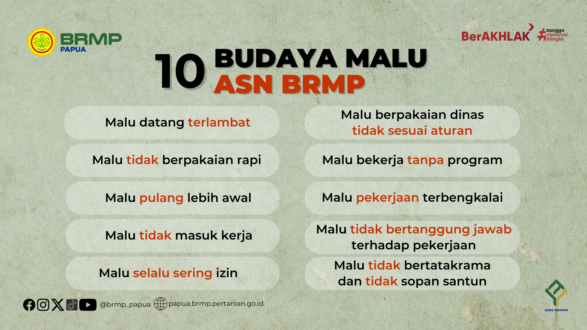 Badan Perakitan dan Modernisasi Pertanian (BRMP) mengusung modernisasi pertanian berkelanjutan dengan inovasi teknologi yang meningkatkan produktivitas, efisiensi, dan daya saing sekaligus menjaga kelestarian lingkungan. Melalui penelitian, perakitan teknologi, mekanisasi, dan digitalisasi, BRMP membangun sistem pertanian yang cerdas, ramah lingkungan, dan tangguh menghadapi tantangan masa depan.