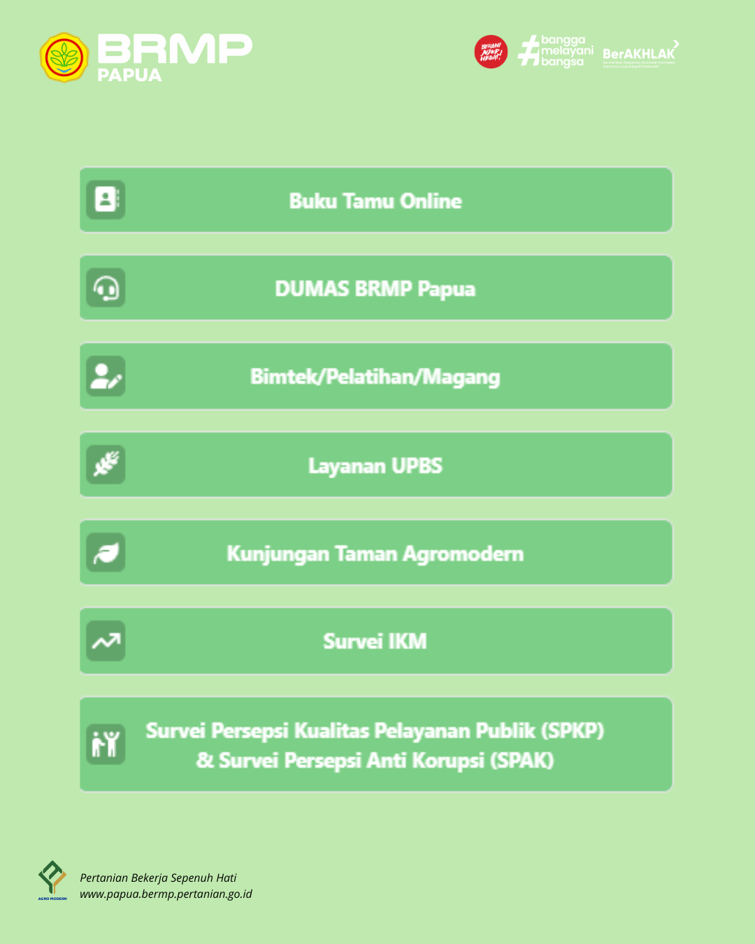 Layanan Terpadu BRMP Papua ini memuat daftar pelayanan yang dapat anda akses secara langsung.